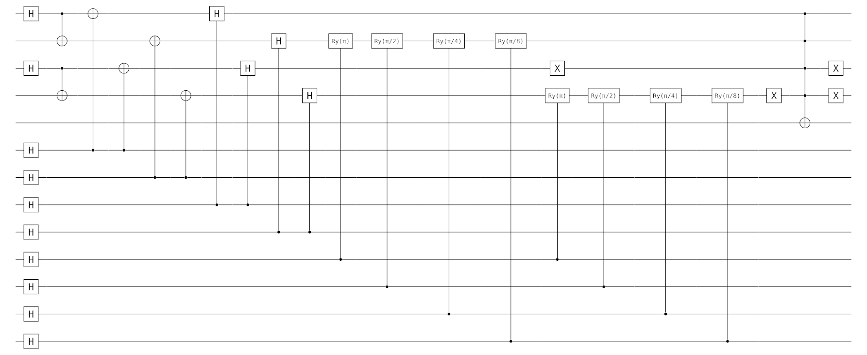As we can see the amplitudes of the optimal configuration of the parameter qubits are amplified. Measuring the parameter qubits would then (with high probability) lead to a model for the input state.