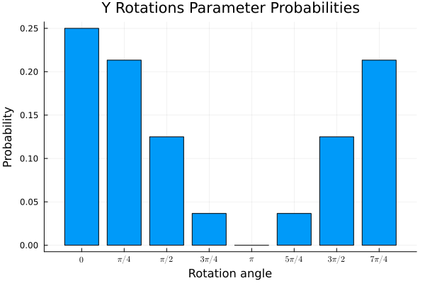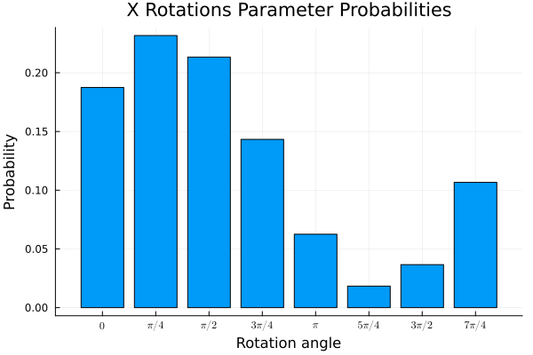 I think this method of modeling the distribution as a quantum circuit and then using AA to amplify the parameters that most likely generated the sample is quite simple, but might be useful. In the next section we will treat a little more complex distribution and showcase a “learning with AA” framework written in Julia.