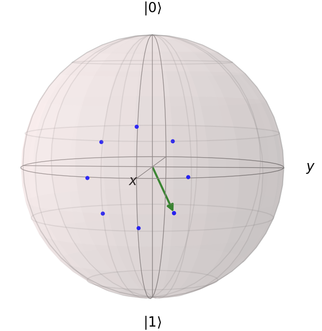 In the figure we can see, that any state that is put into a superposition over equi-distant rotations around the X axis, results in a state, that yields $|0\rangle$ or $|1\rangle$ with probability $\frac{1}{2}$.